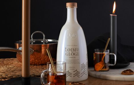 Kaunis pohjoismainen muotoilu ja kultainen juhla-asu pukee alkoholittoman Loimu Premium glögin juhlakauteen sopivaksi.