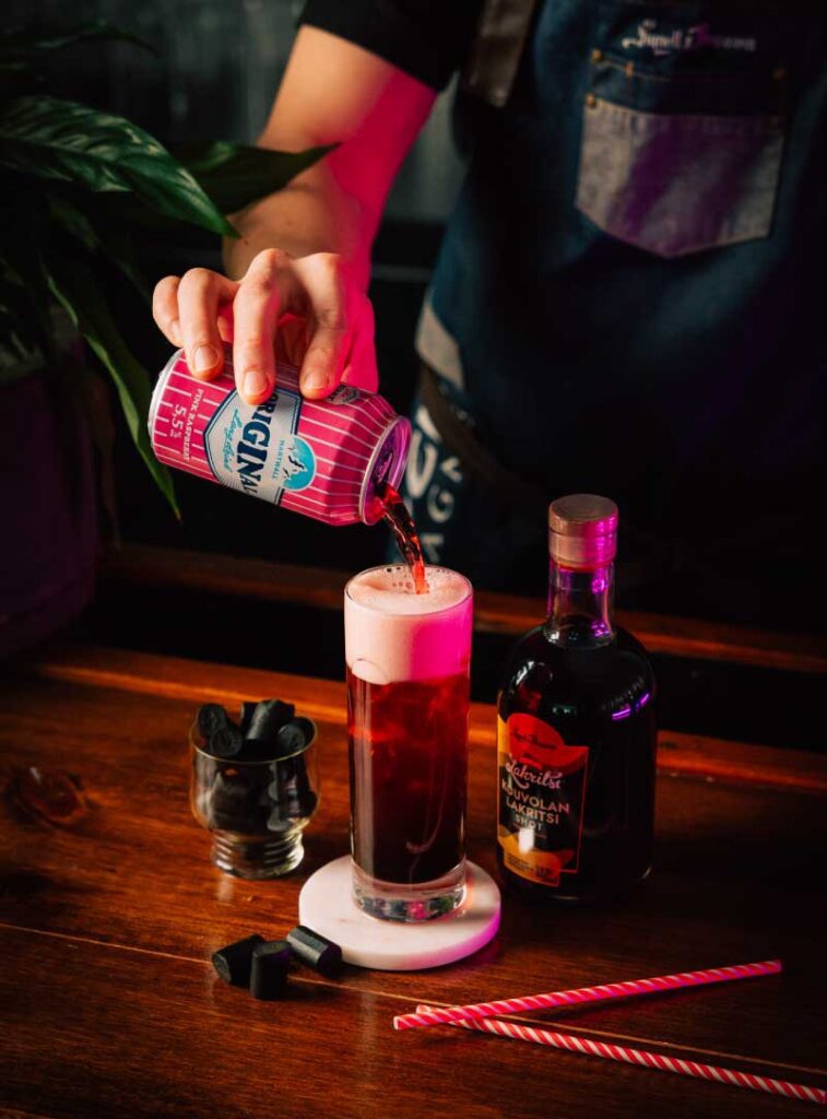 Täytä lasi jäillä ja kaada sekaan Kouvolan Lakritsi Shot ja Pink Raspberry. Sekoita varovasti ja nauti!