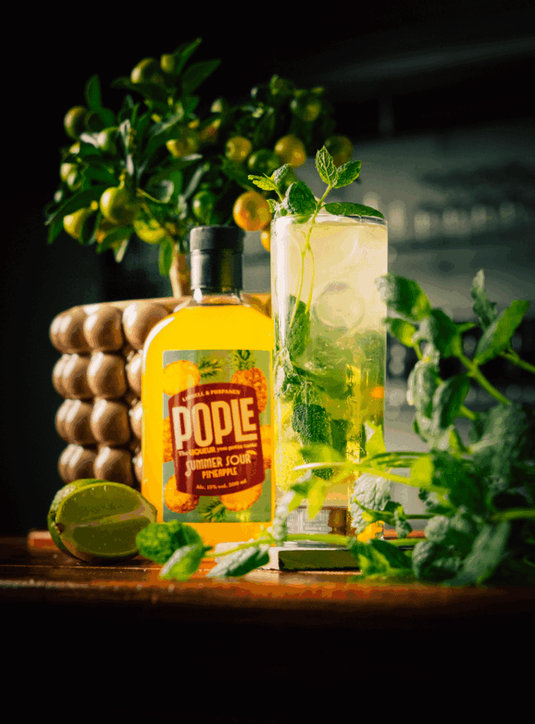 Murskaa limelohkot, mintunlehdet ja sokeri kevyesti lasin pohjalle. Lisää Pople ja jäitä, ja täytä lasi kivennäisvedellä. Sekoita varovasti ja nauti raikkaasti!